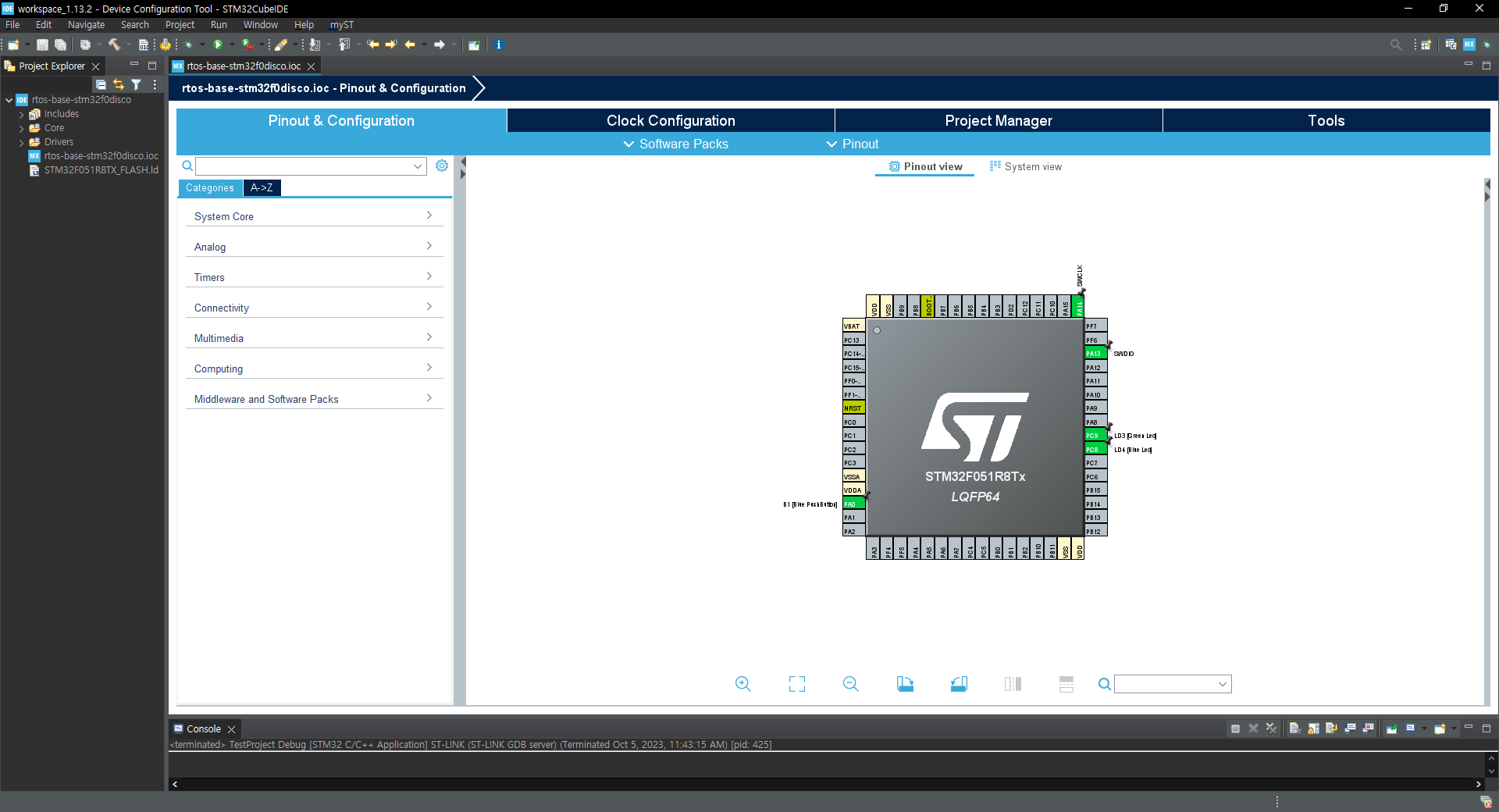 위 ioc 파일에서 설정한 값을 ctlr + s를 이용하여 저장하면 설정이 자동으로 반영되어 코드가 생성된다.