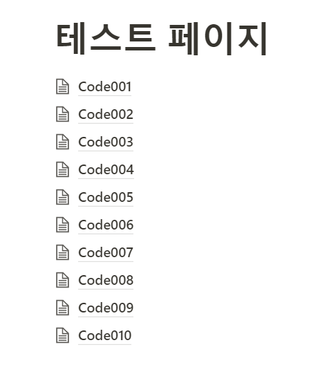 테스트 페이지 10개에 모두 코드 블럭이 들어갔습니다.